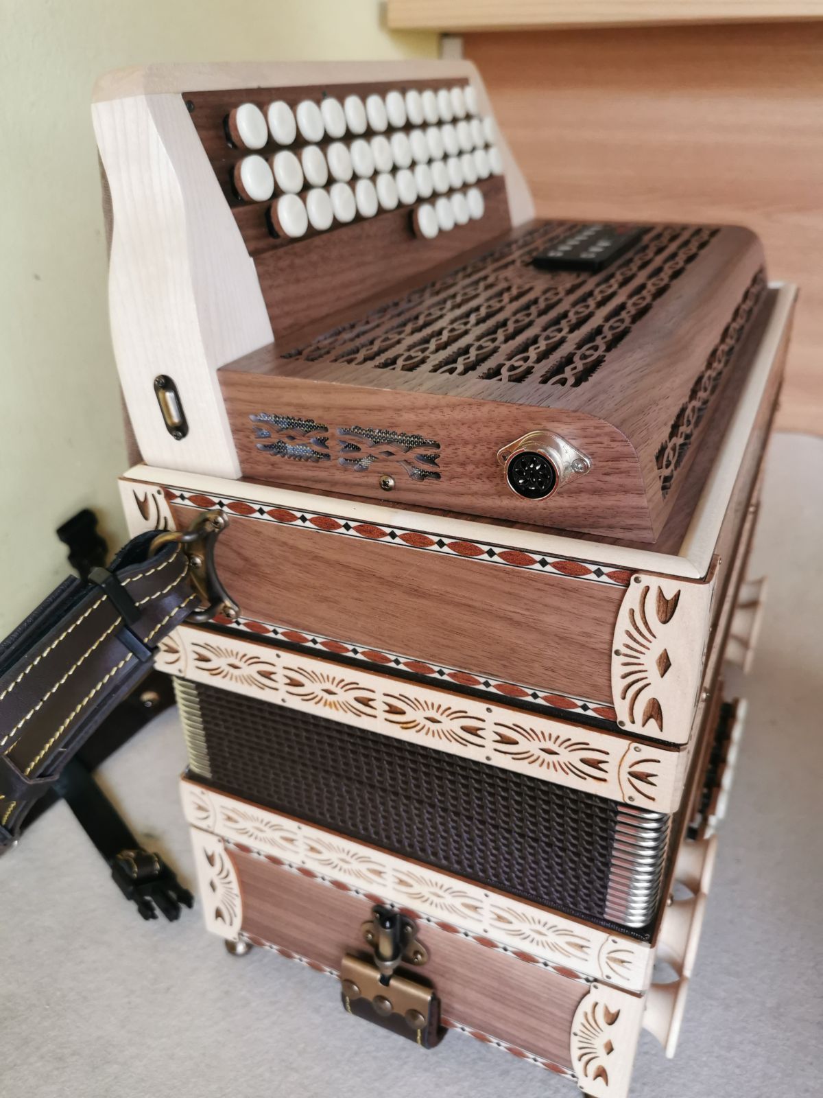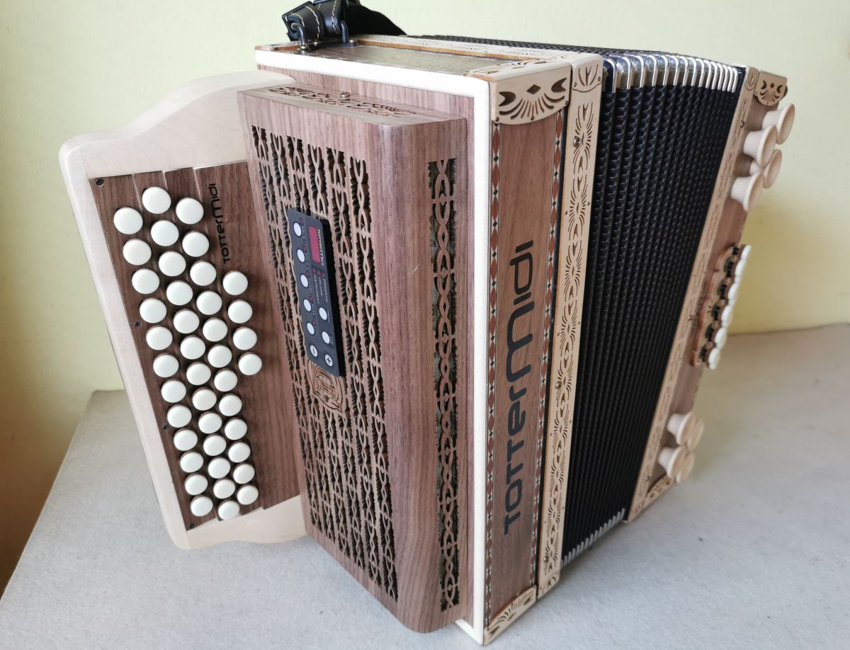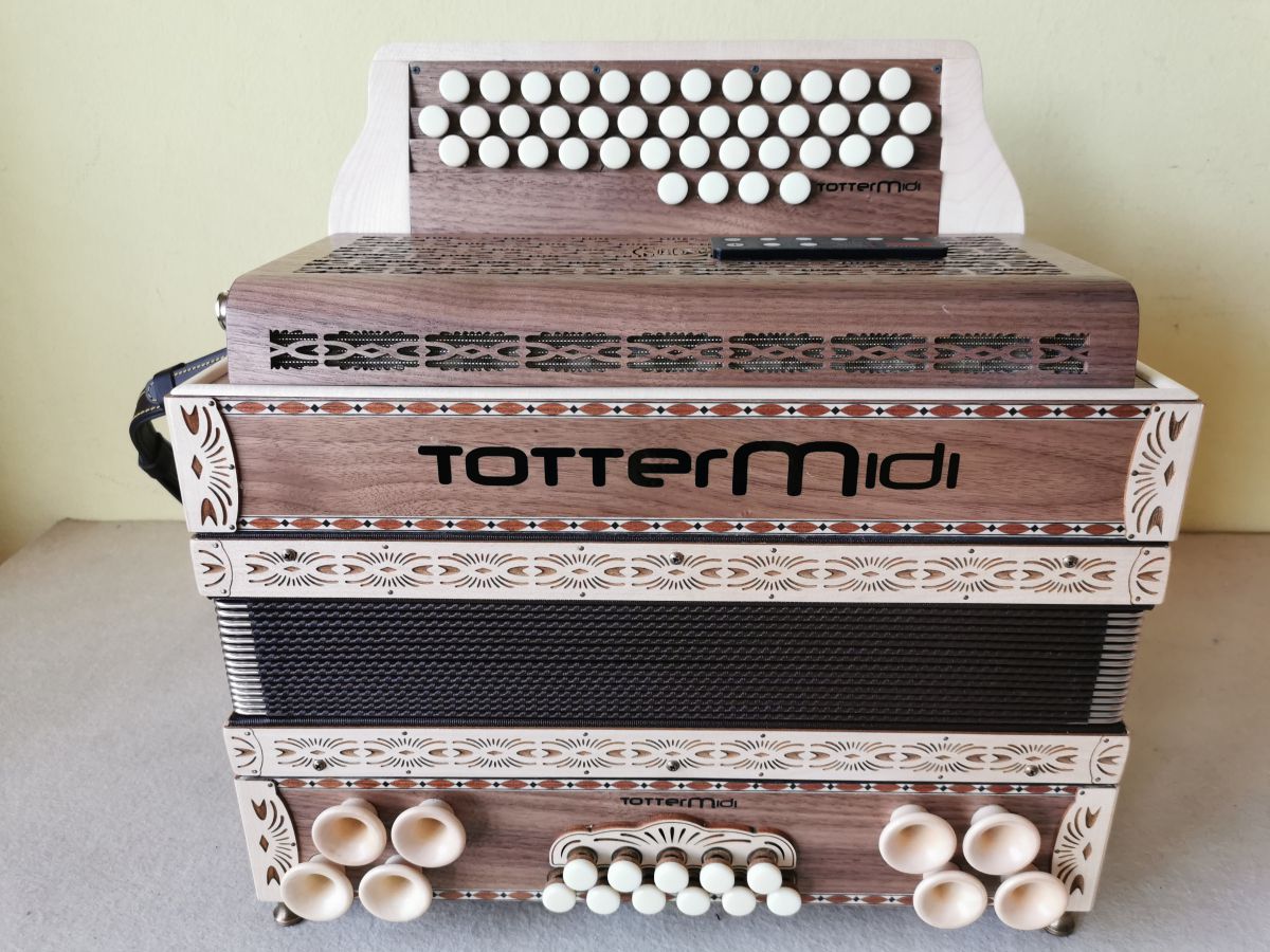 We present you the TOTTER MIDI electronic diatonic accordions. In addition to TOTTER MIDI systems and MICROPHONE systems and the sound module SONATTER we also offer new electronic diatonic button accordions.